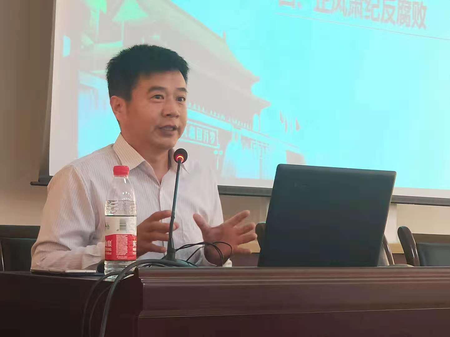 黄博士从两个问题:研究的时间点和时间段问题、习近平全面从严治党思想的有机组成部分问题切入今天的发言内容,主要从加强党的政治建设、坚定理想信念、建设高素质的干部队伍、正风肃纪反腐败、加强基层党组织建设五个方面展开讲述。然后具体分析了习近平全面从严治党思想的成熟脉络,开始于正定,正式形成在十八大以后,成熟在十九大,让我们进一步加深对这一思想及习近平同志本人的了解,认识到学习是我们党不断增强执政本领注入动力之源。