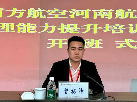 11月18日下午,中国南方航空河南航空有限公司2025年管理能力提升培训班(第三期)在我校举行。中国南方航空河南航空有限公司副总经理、财务总监曾栋泽,河南大学干部培训中心(继续教育学院)党总支书记韦胜军出席开班式。开班式由河南大学干部培训中心石晓晴主持,来自中国南方航空河南航空有限公司的近40名学员参加。