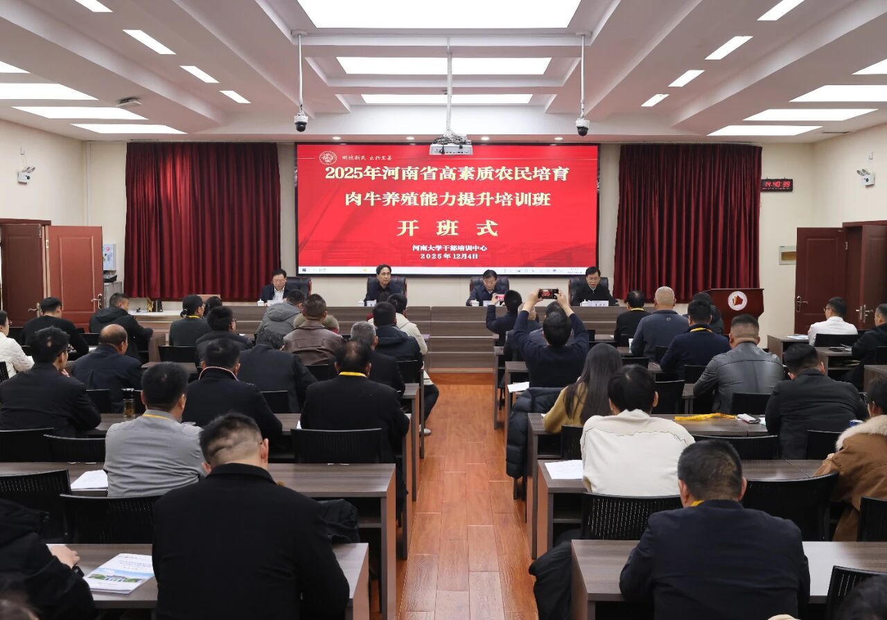 12月4日,2025年河南省高素质农民培育 肉牛养殖能力提升培训班在我校举行。河南省农业农村厅一级巡视员马万里,河南大学党委副书记李平,河南省农业农村厅总畜牧师、二级研究员白跃宇出席开班式。开班式由河南大学干部培训中心(继续教育学院)党总支书记韦胜军主持,来自全省肉牛养殖从业者参加培训。