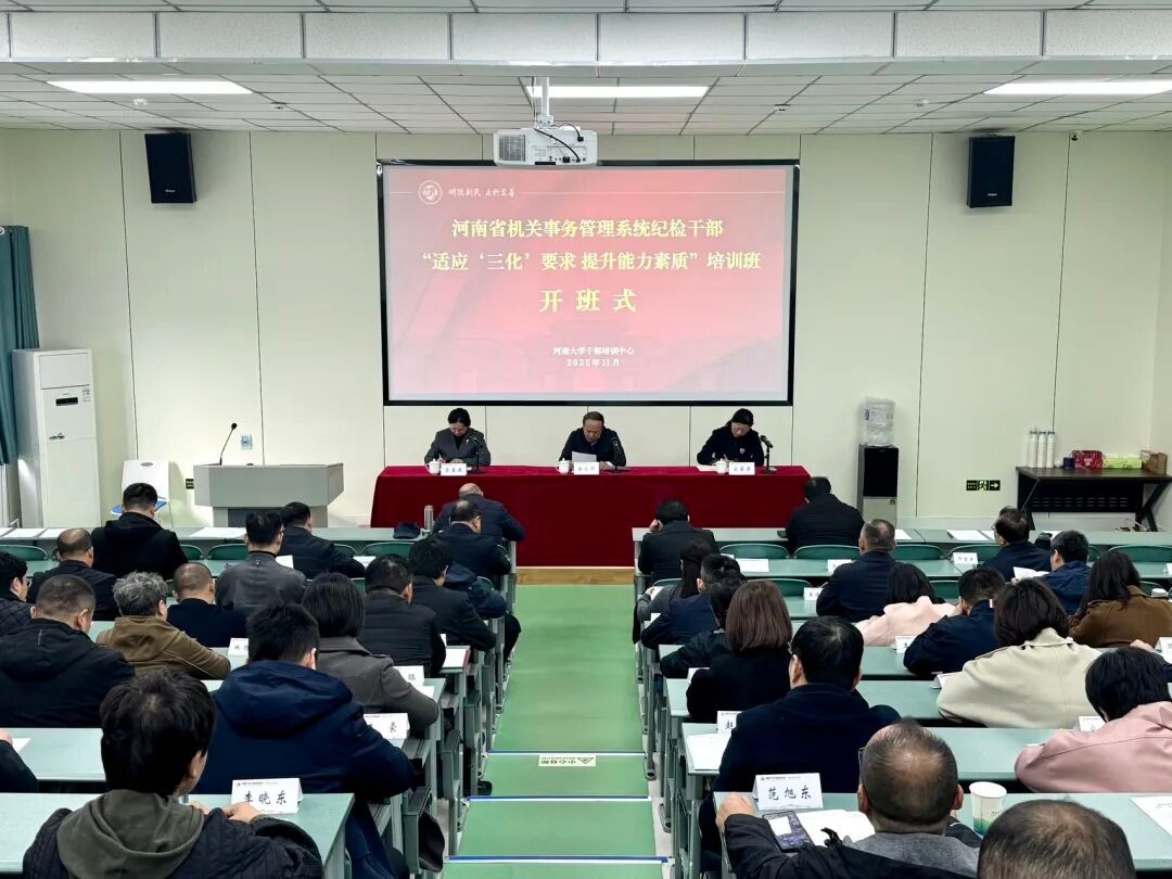 11月11日上午,河南省机关事务管理系统纪检干部“适应‘三化’要求 提升能力素质”培训班在我校举行。省纪委监委驻省事管局纪检监察组组长薛永卿,河南大学校纪委副书记宋菊芳出席开班式。开班式由河南大学干部培训中心项目部主任窦春燕主持,来自省机关事务管理系统近80名纪检干部参加培训。