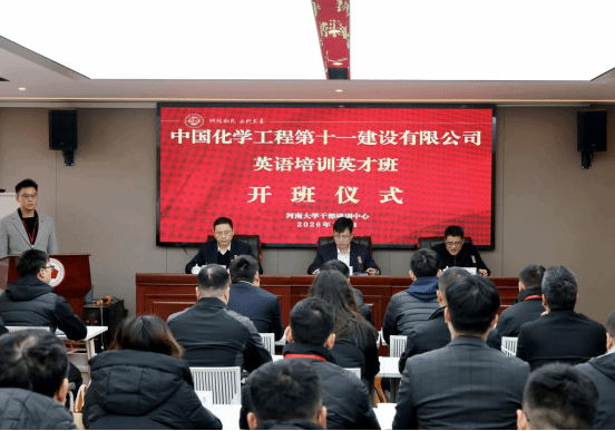 1月6日上午,中国化学工程第十一建设有限公司“英语培训英才班”在我校举行。中国化学工程第十一建设有限公司副总经理袁忠学,河南大学干部培训中心主任、继续教育学院院长袁凯强,中国化学工程第十一建设有限公司副总工程师,党委组织部(人力资源部)部长娄战士出席开班式。开班式由河南大学干部培训中心庄俊华主持,来自十一化建公司的学员参加培训。